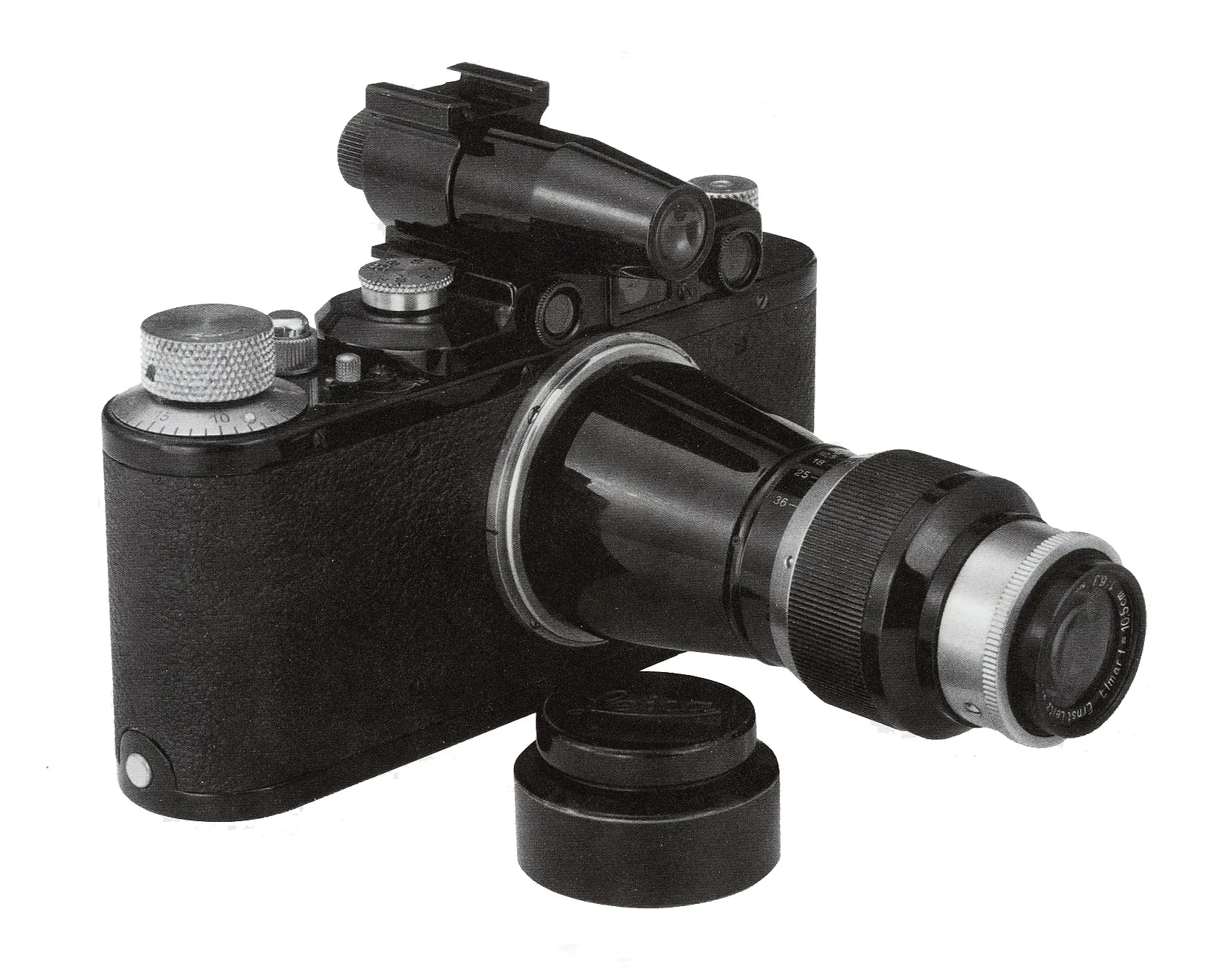 ▲徕卡Ⅱ以及Elmar-SM 6.3/105mm(No.128888)和VIDEO取景器